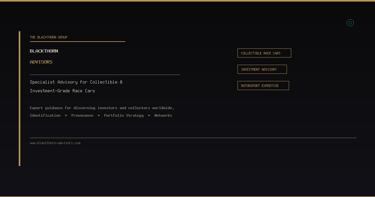 Blackthorn Advisors was founded to provide discerning investors with expert guidance on the identification and selection of the finest and most collectible race cars — a niche asset class that rewards deep knowledge and specialist networks.